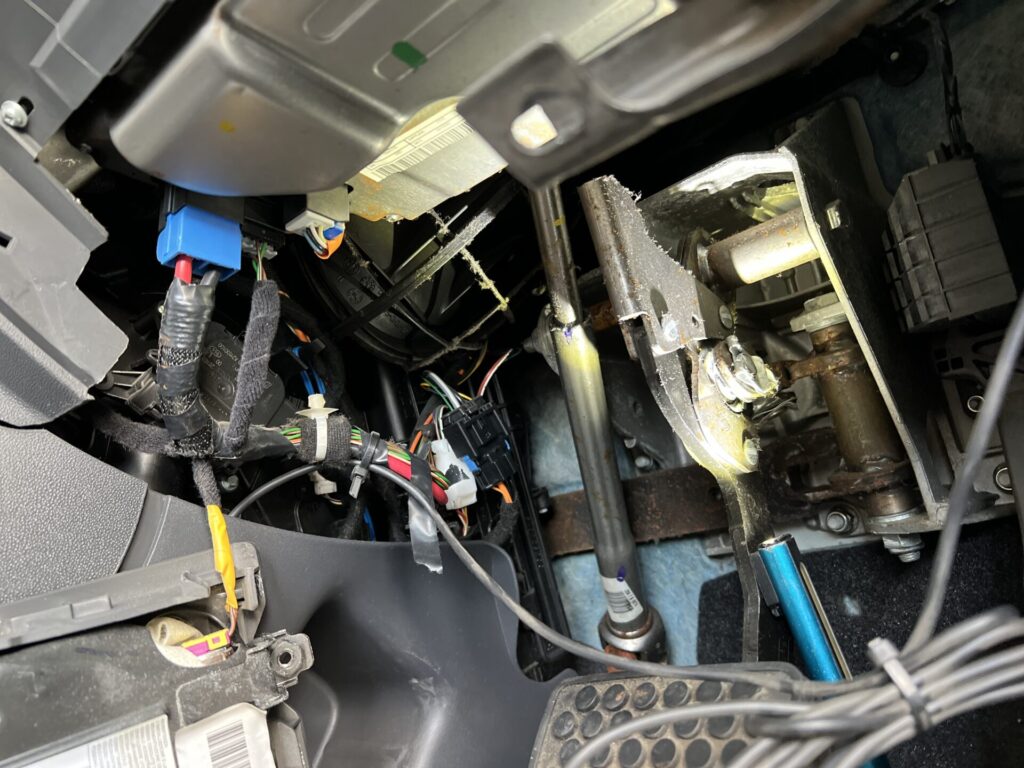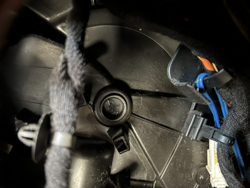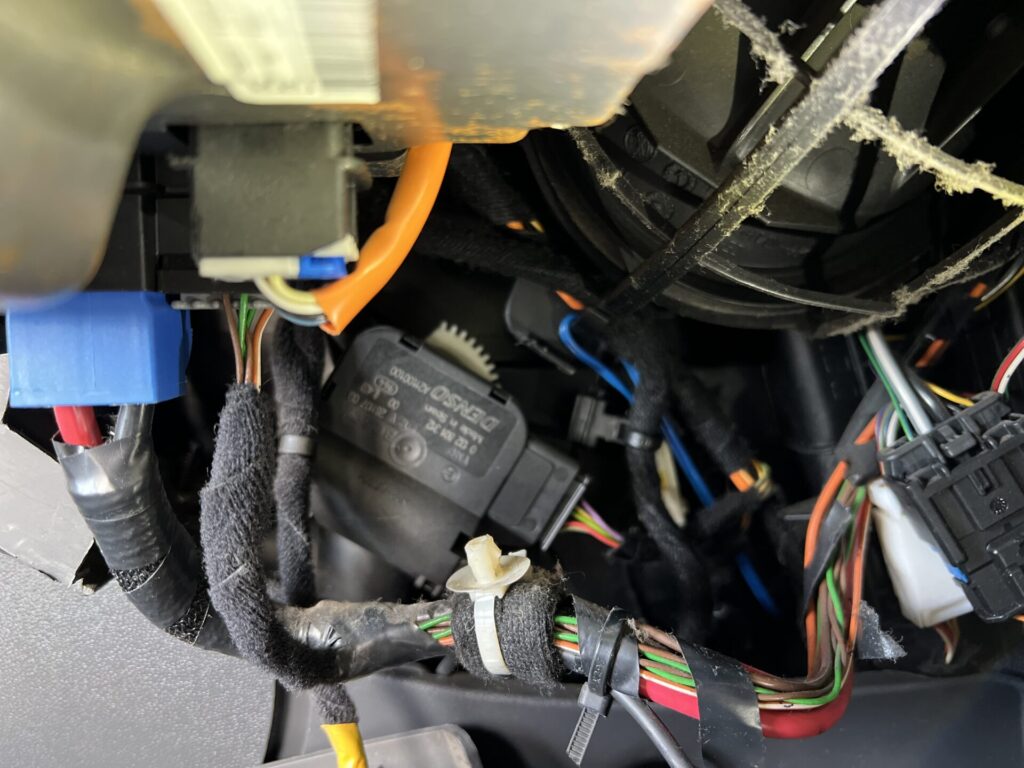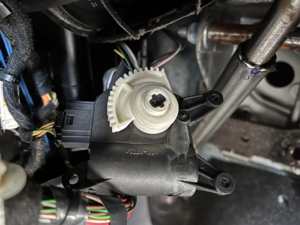 運転席のフットカバーを取り外し、ミキシングフラップモーターが動いているか