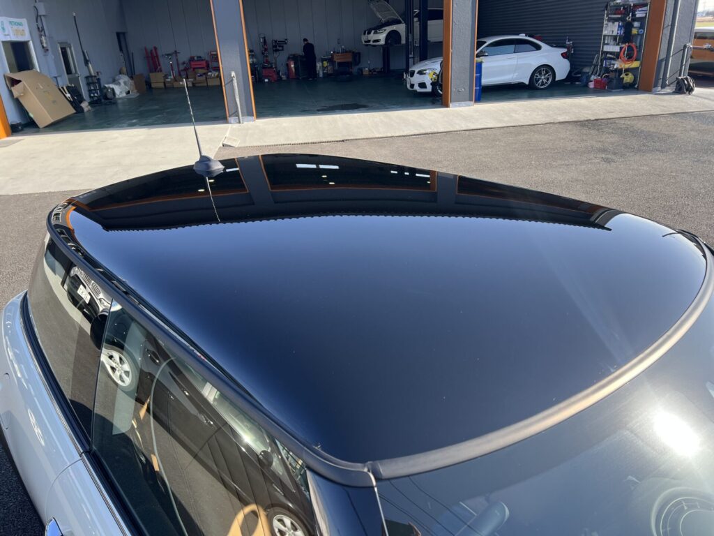 MINIはルーフがソリッドの黒で、磨き・仕上げ共に大変です💦