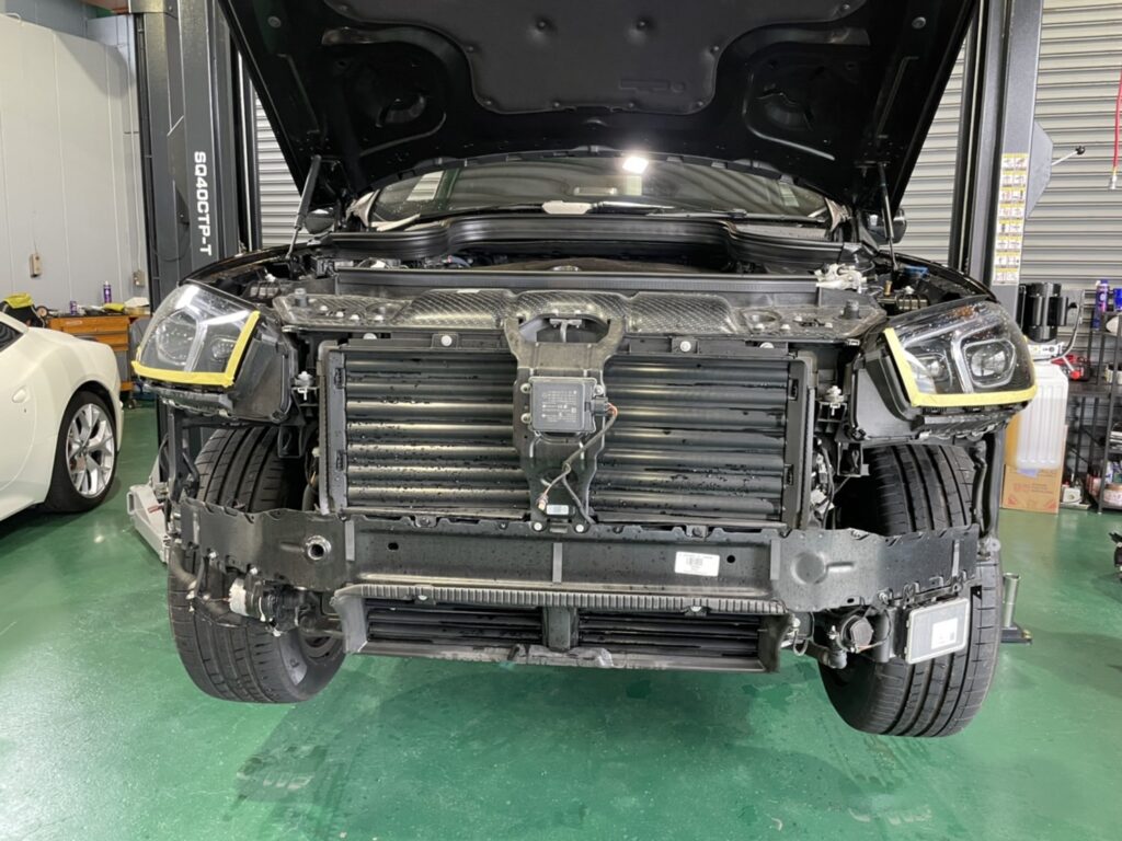 しっかりと養生してフロントバンパーを外していきます。