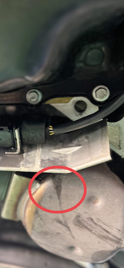 エキゾーストに付着するので、こちらも漏れを放置すると大変危険です。