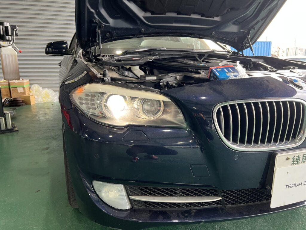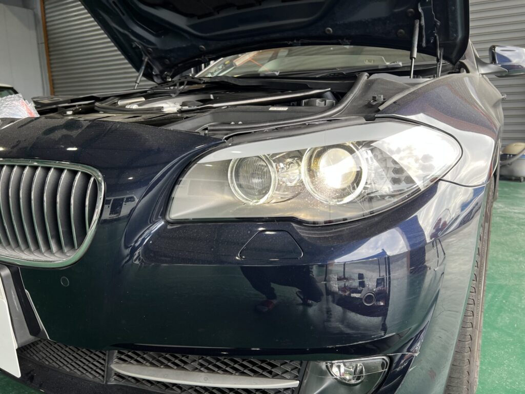 本日は、BMW F10 フォグライト曇り・HIDヘッドライト暗い