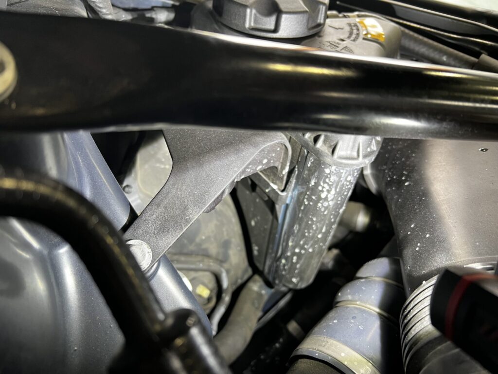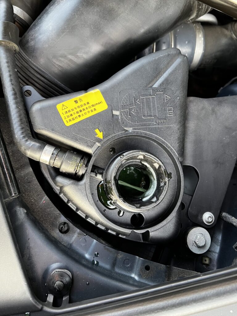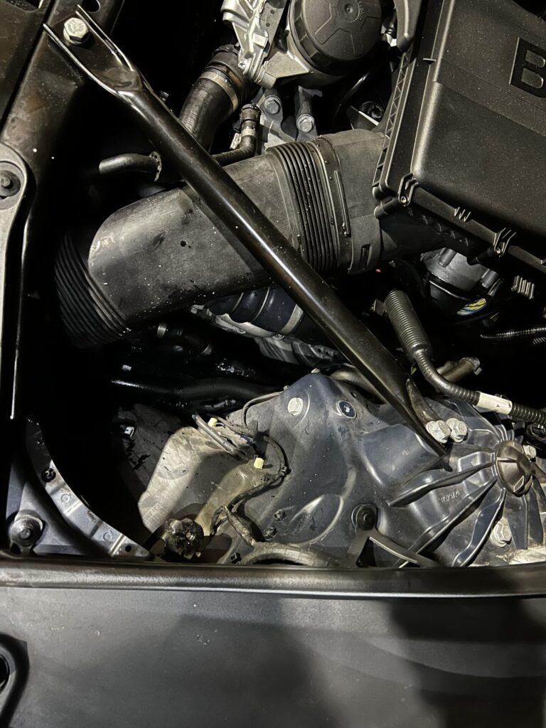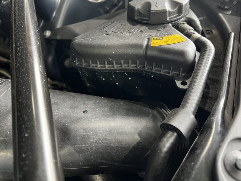 エアーインテークとターボチャージャーホース部にクーラントが飛び散った跡あり。