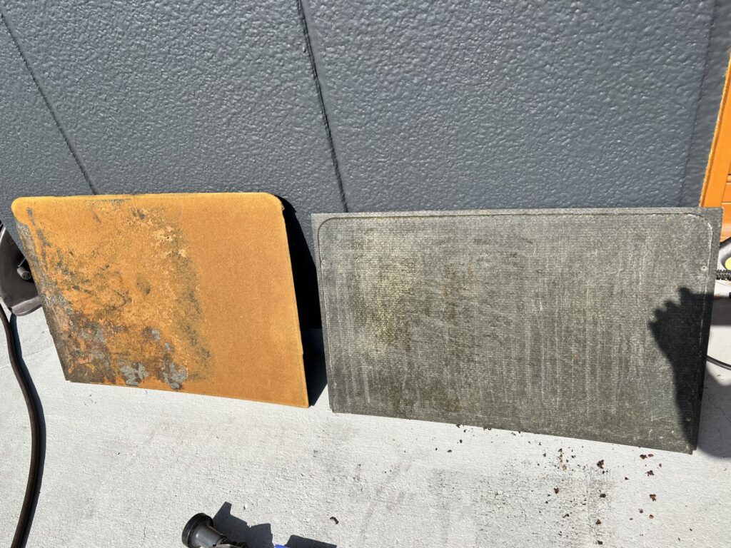 右が清掃後 左が生地を剥がしたシェイドです。