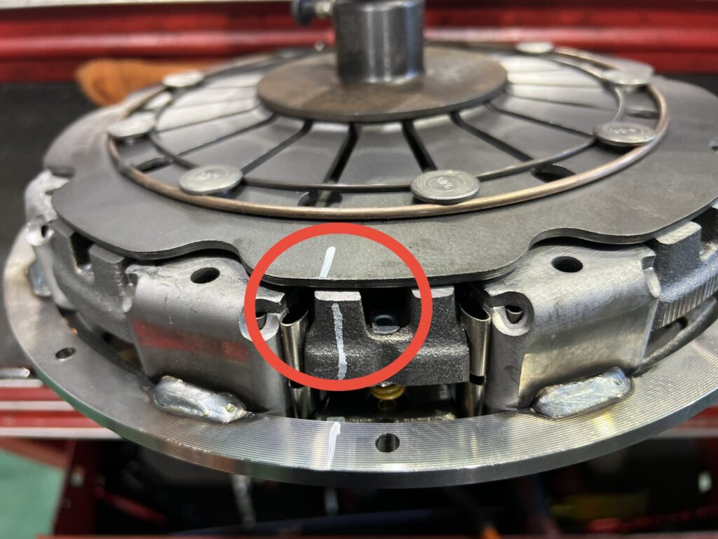 クラッチプレートをばらした時などは、必ず白線を合わせて組付けなければなりません。