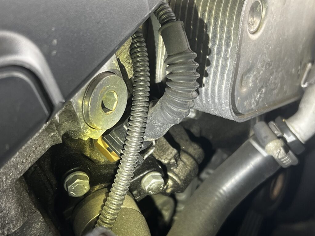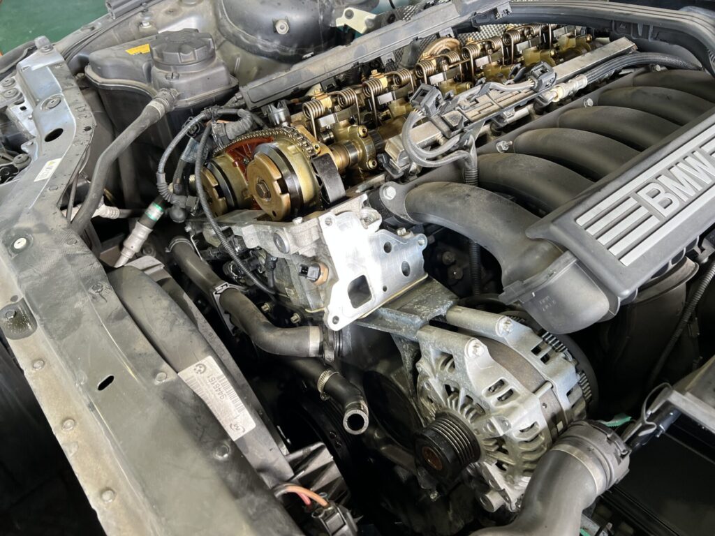 このN52B25Aエンジンの、あるあるオイル漏れです。