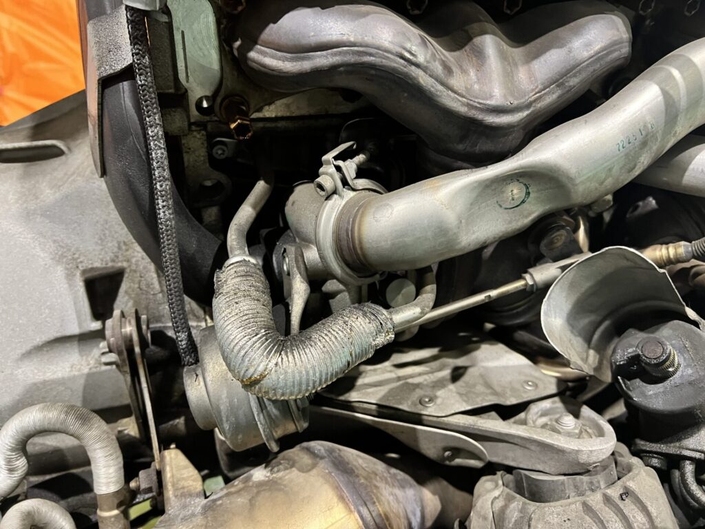 お車を拝見させて頂いたところ、ターボ廻りからクーラントが垂れているのと