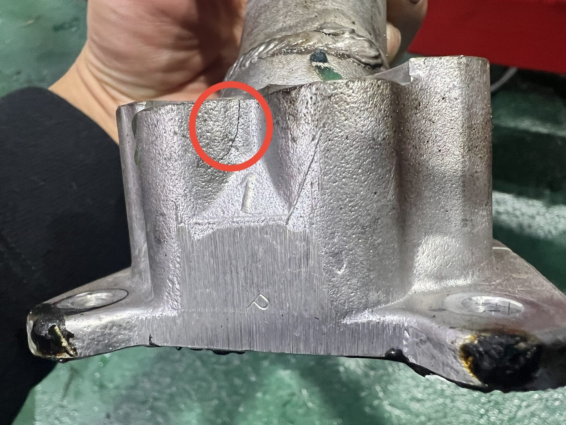 ターボに繋がるホースの取り付け部がクラックが入っています!