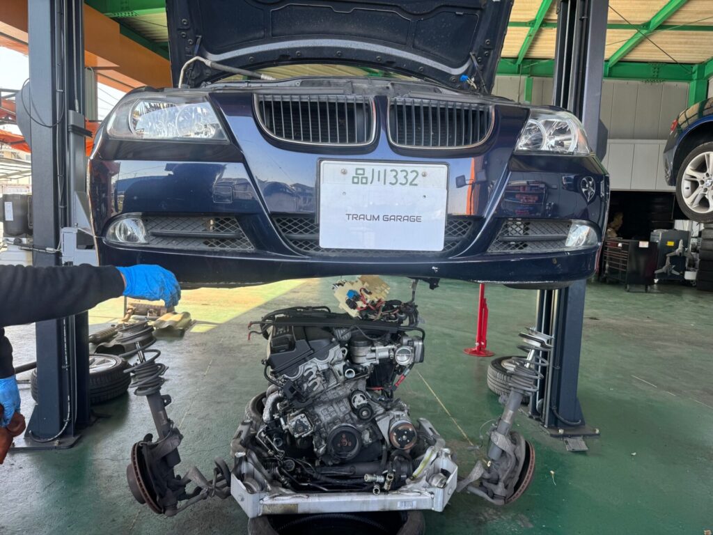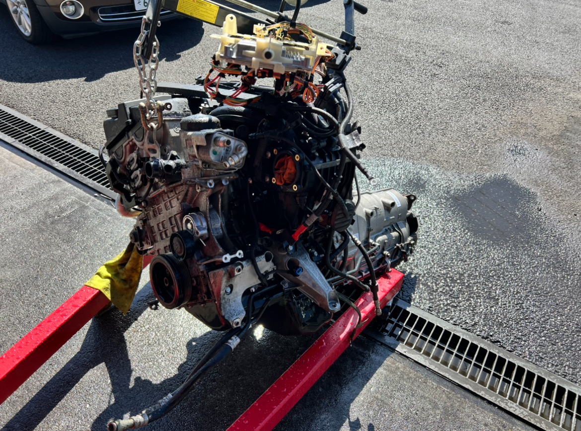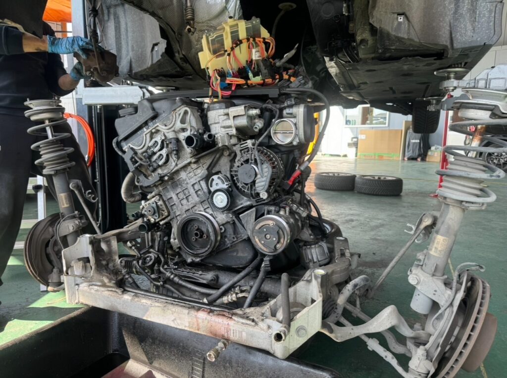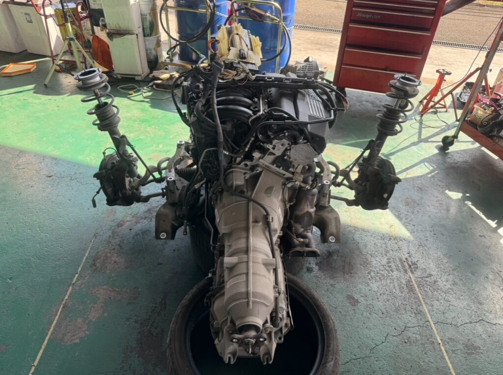お客様のお車からエンジン・ミッションを取り外しから行います