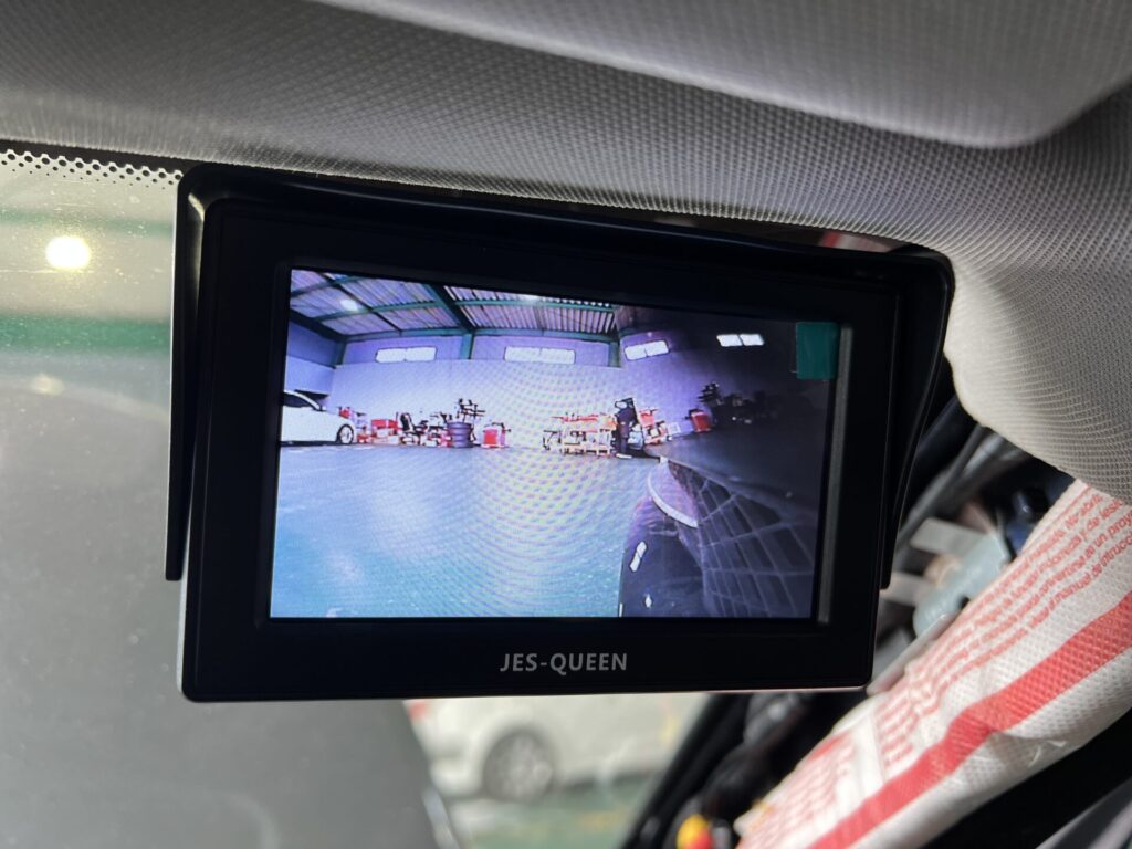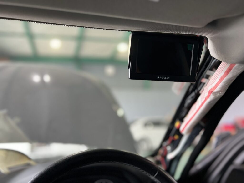 モニターは運転席側右上ガラスへ配置致しました。