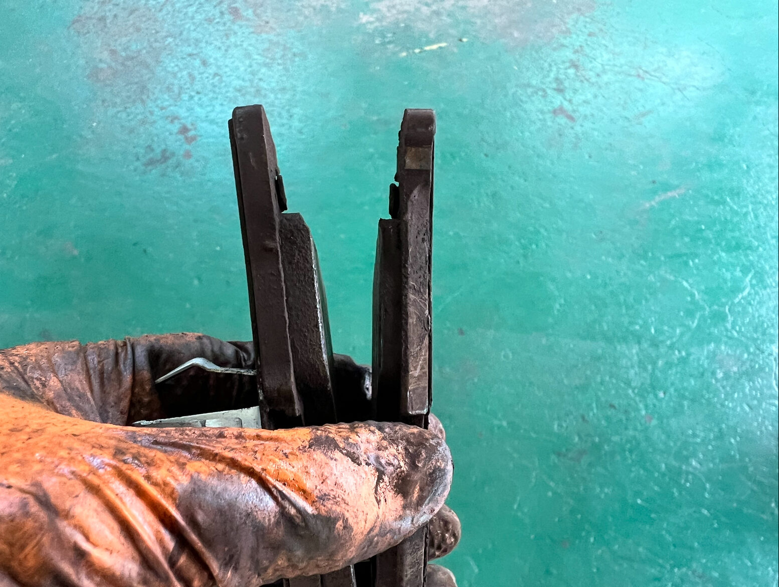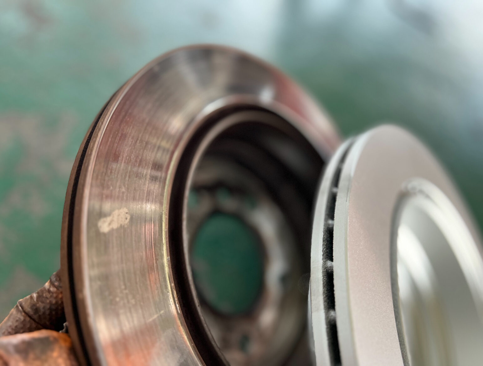 ローターが写真の様に段付き摩耗していたら交換時期になります