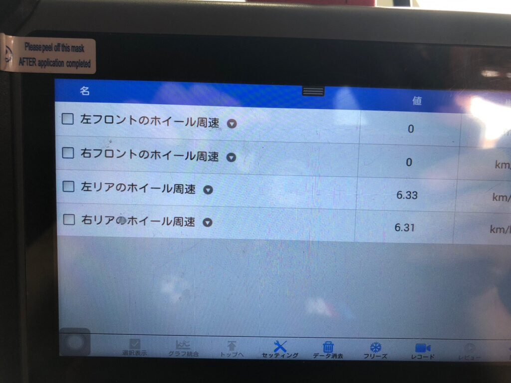 リフトアップ状態でドライブに入れリアタイヤを回転させステータスを確認