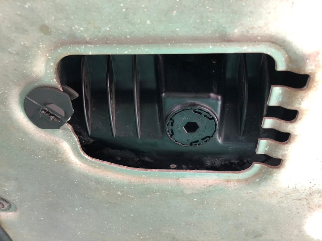 このエンジン、オイルパンがプラスチック製でドレーンもプラスチック製です