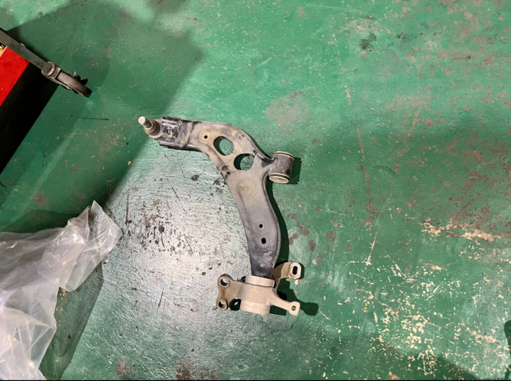 音の出ている個所はコントロールアームに圧入されているブッユ部になります