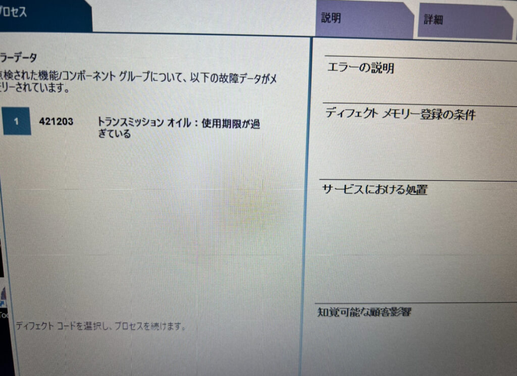 DCTオイルのオイル劣化による故障メモリーが入力されていました!
