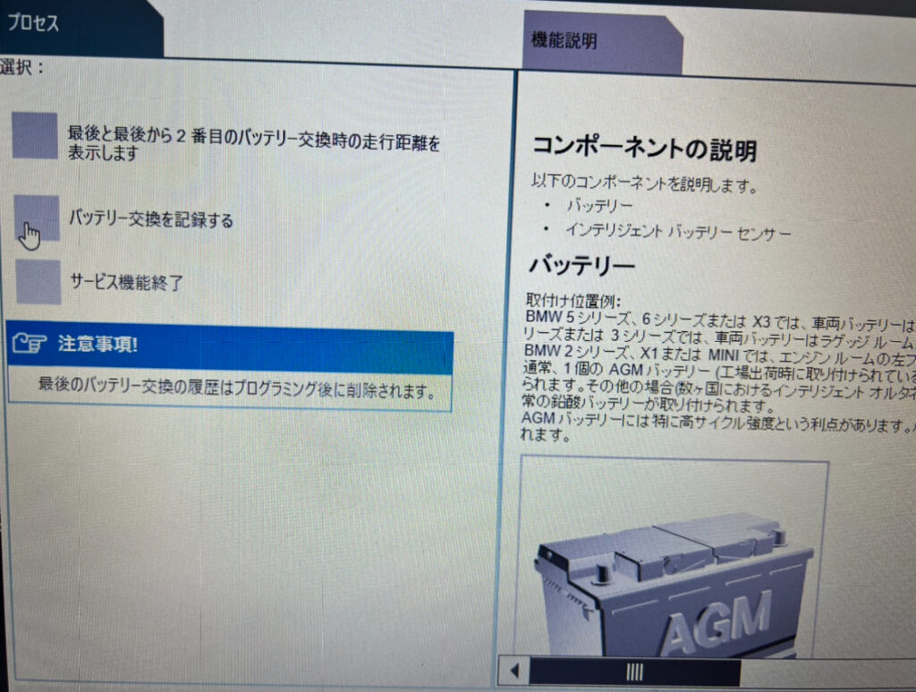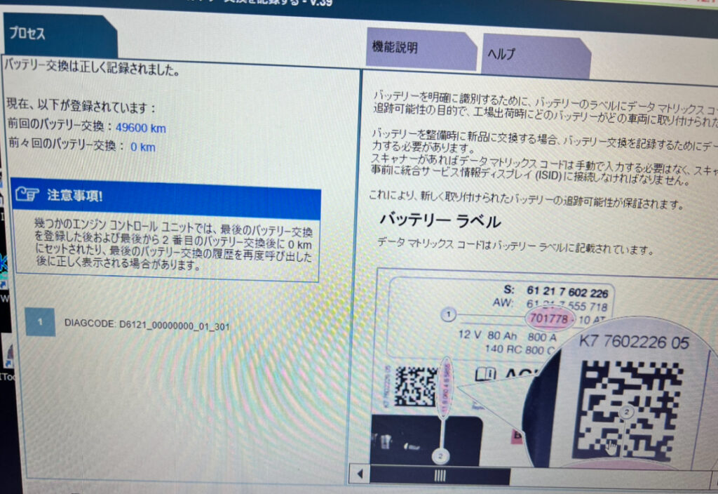 DME(エンジンコンピューター)にバッテリー交換を行った登録が必要になります