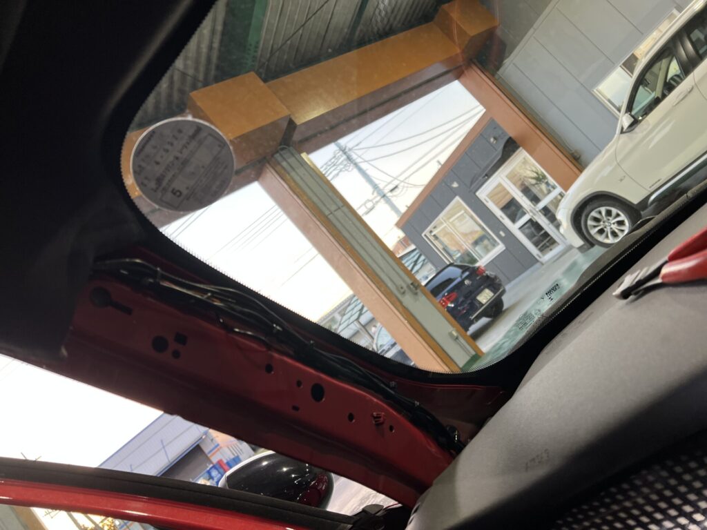 左Aピラーから配線を通してフロントカメラへ