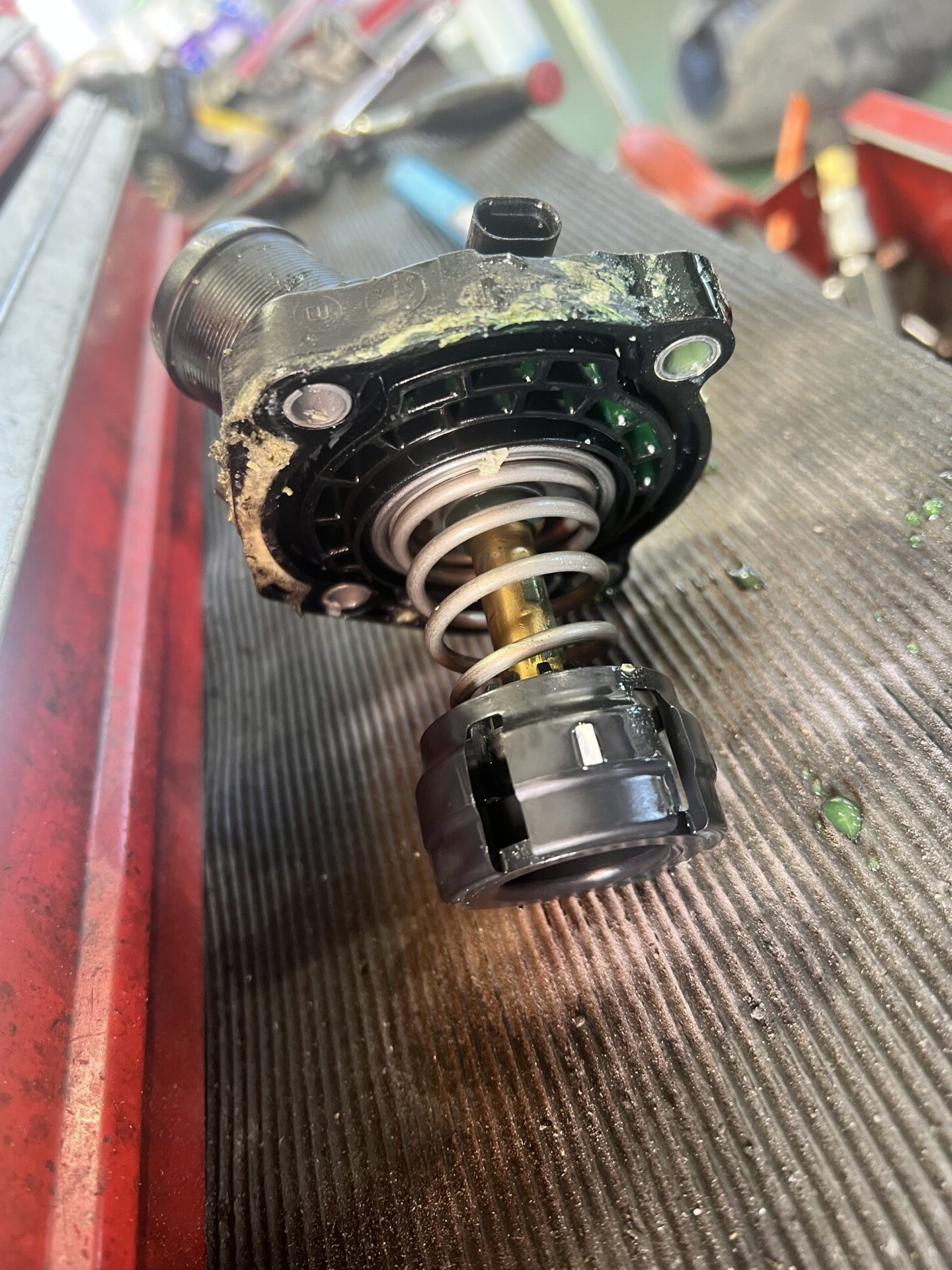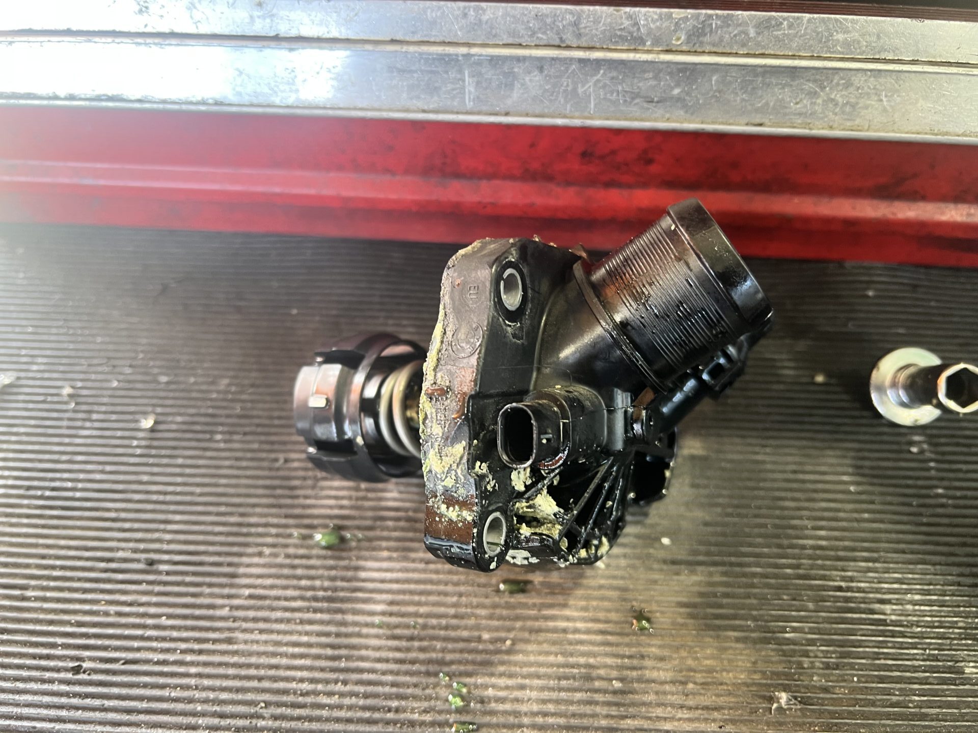 サーモスタット取り付け部をシッカリと清掃し、新たなサーモスタット取り付けて終了。