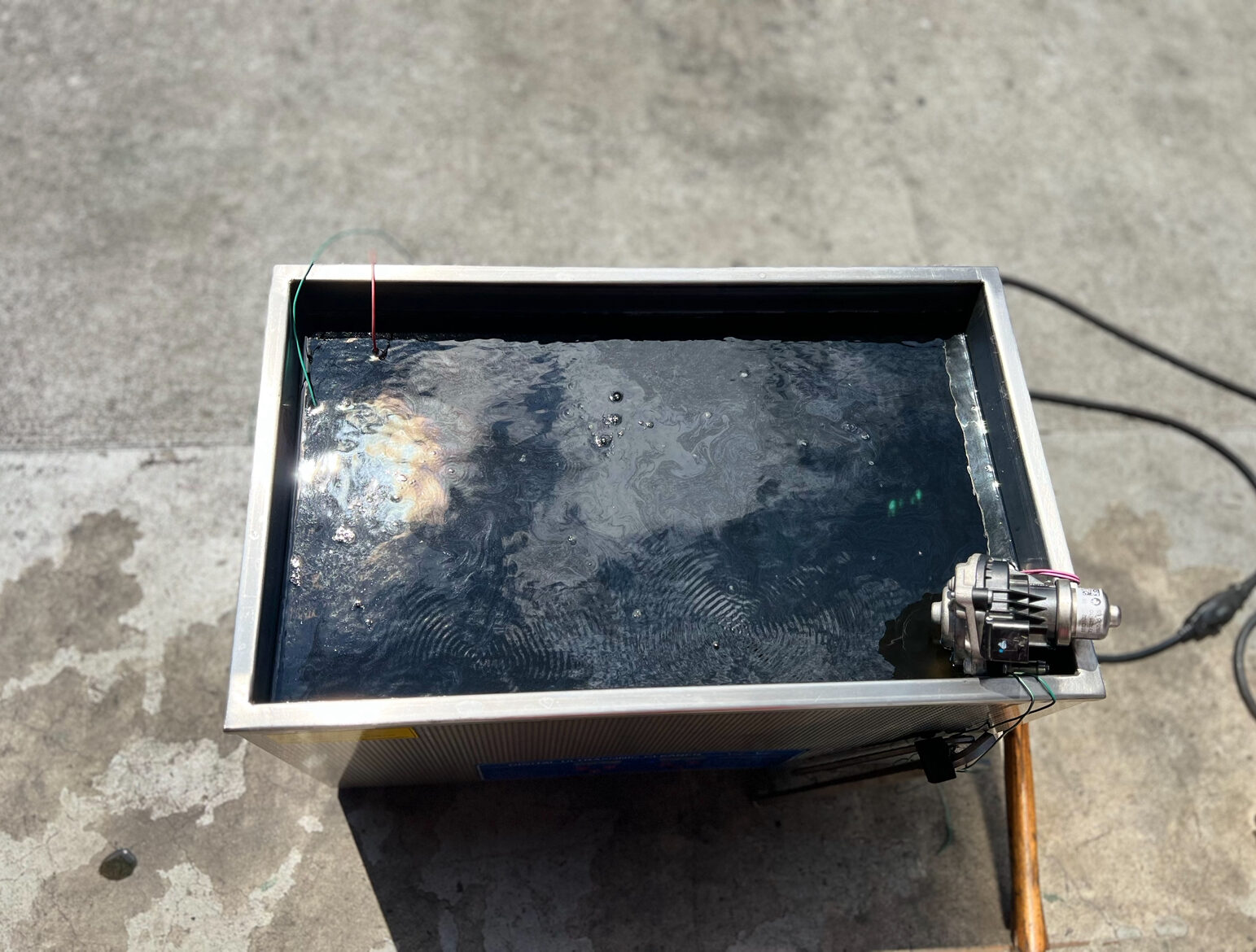 その後、超音波洗浄機に各パーツを漬け込んで徹底的に汚れを浮かせ洗浄します