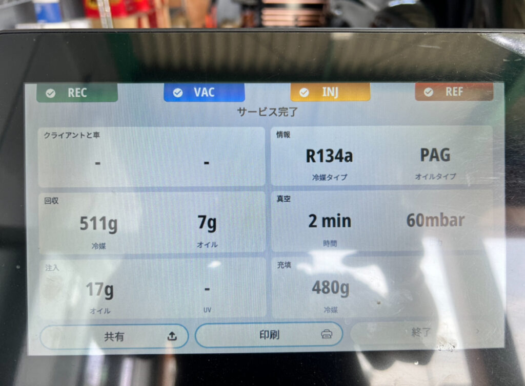 HFC-134aの量は圧力ではなく、グラムで管理するので微量のガス量違いで効きは変わってきます