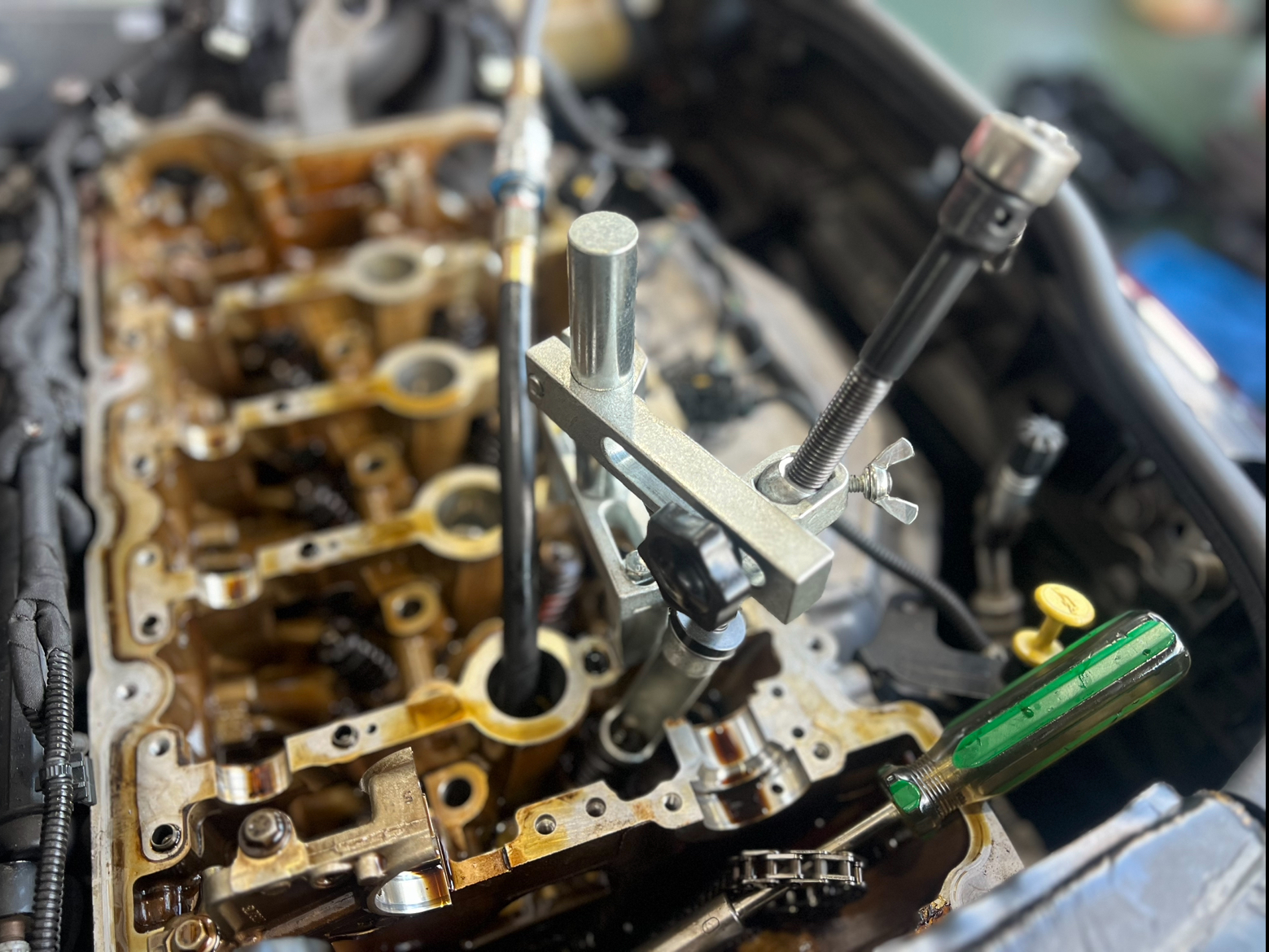 カムシャフトを取り外すのにSSTを取り付けます