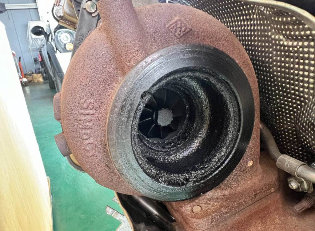 エンジンを点検したところ、タービンからのオイル漏れが原因で