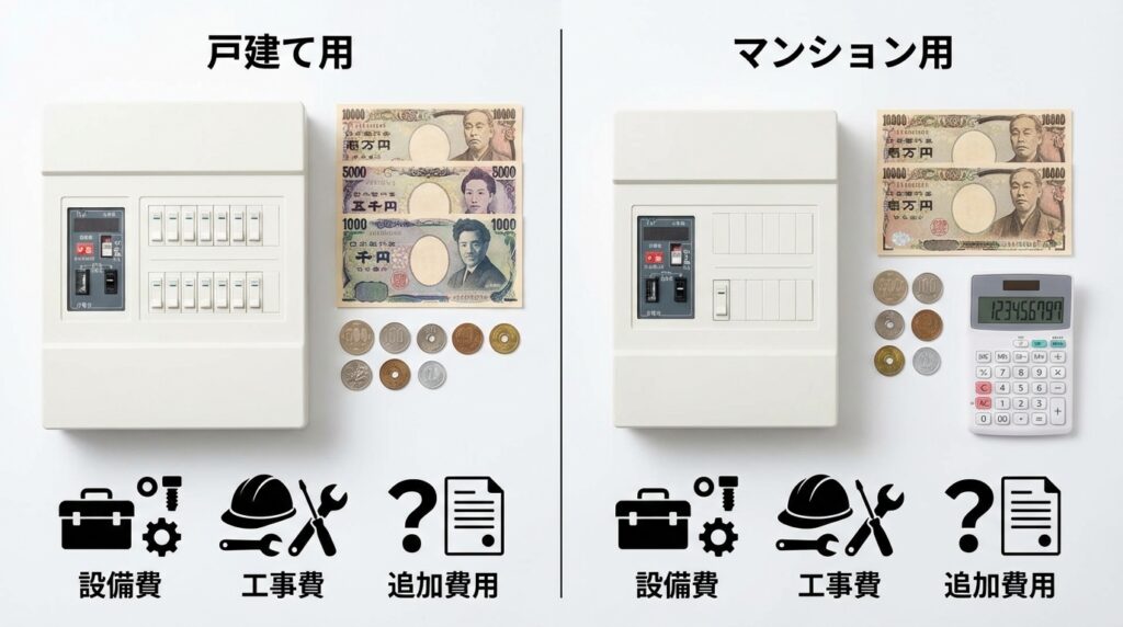 分電盤交換の費用は、建物の種類や工事内容によってかなり幅があります。
