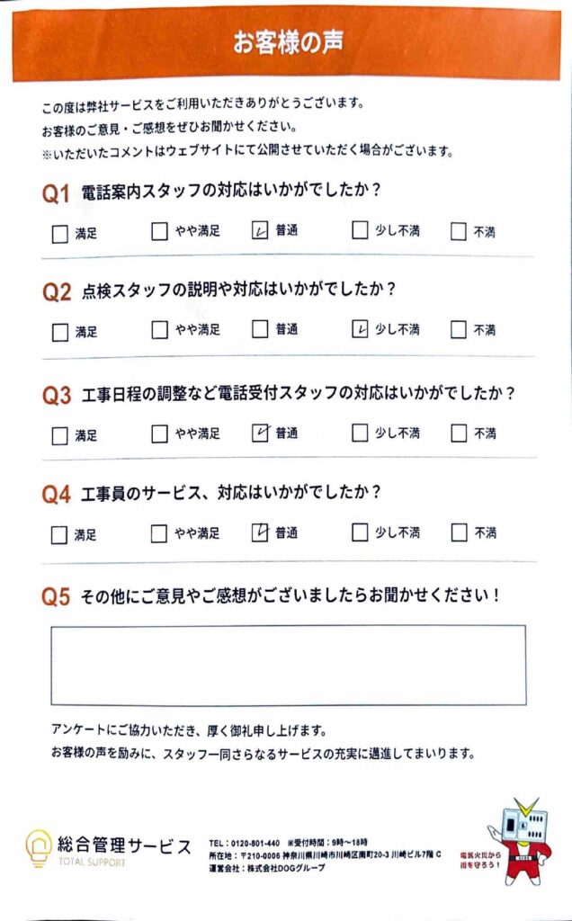 おおよそ普通と回答いただきました。