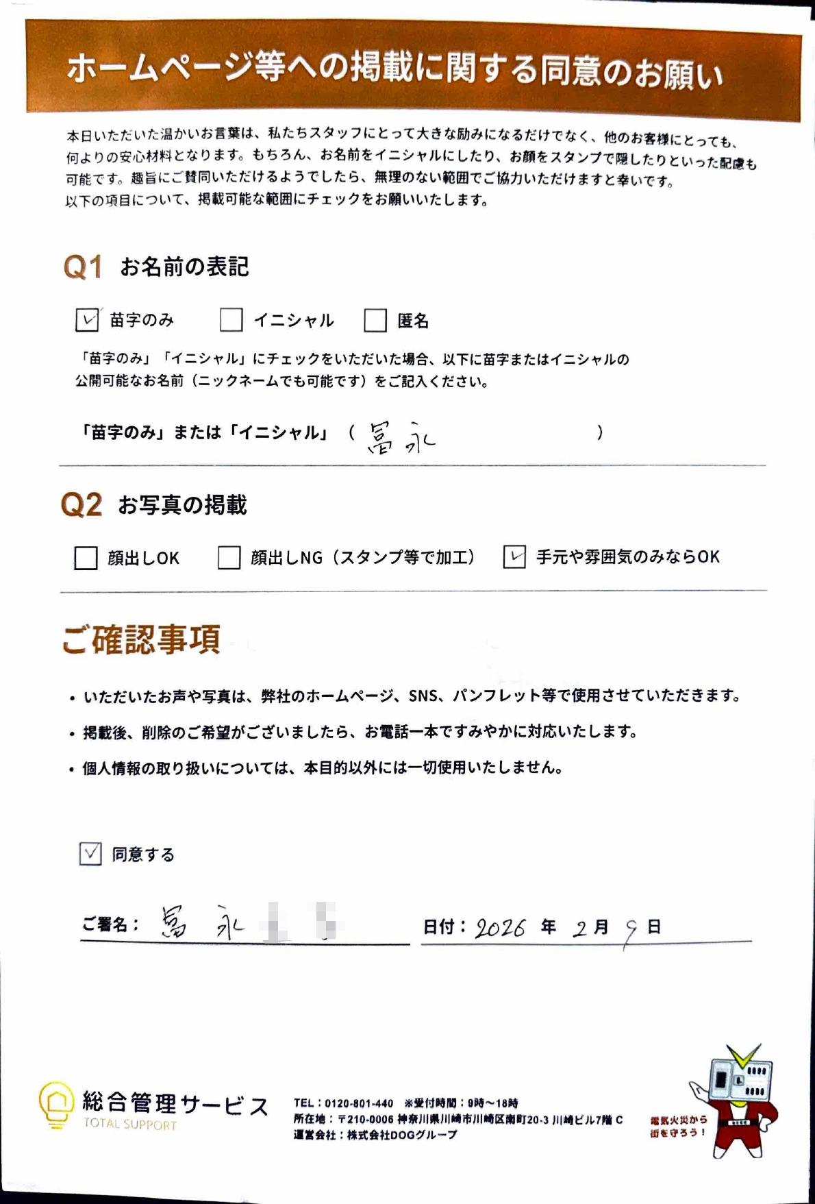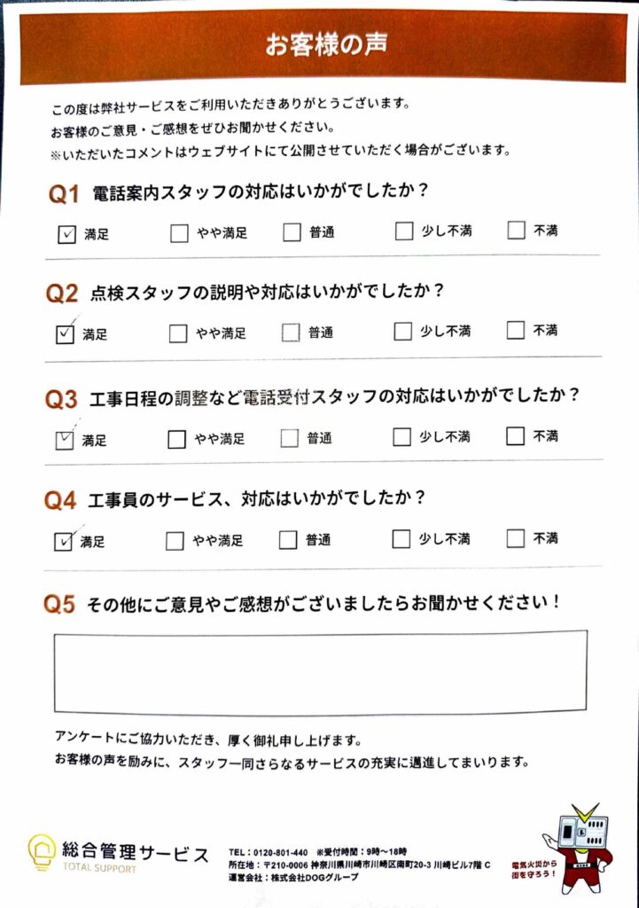 お客様の声(富永様) 投稿日 2026年2月22日 更新日 2026年2月23日 著者 admin カテゴリー お客様アンケート 全ての項目で「満足」とご回答いただきました! この記事を書いた人 admin 記事一覧